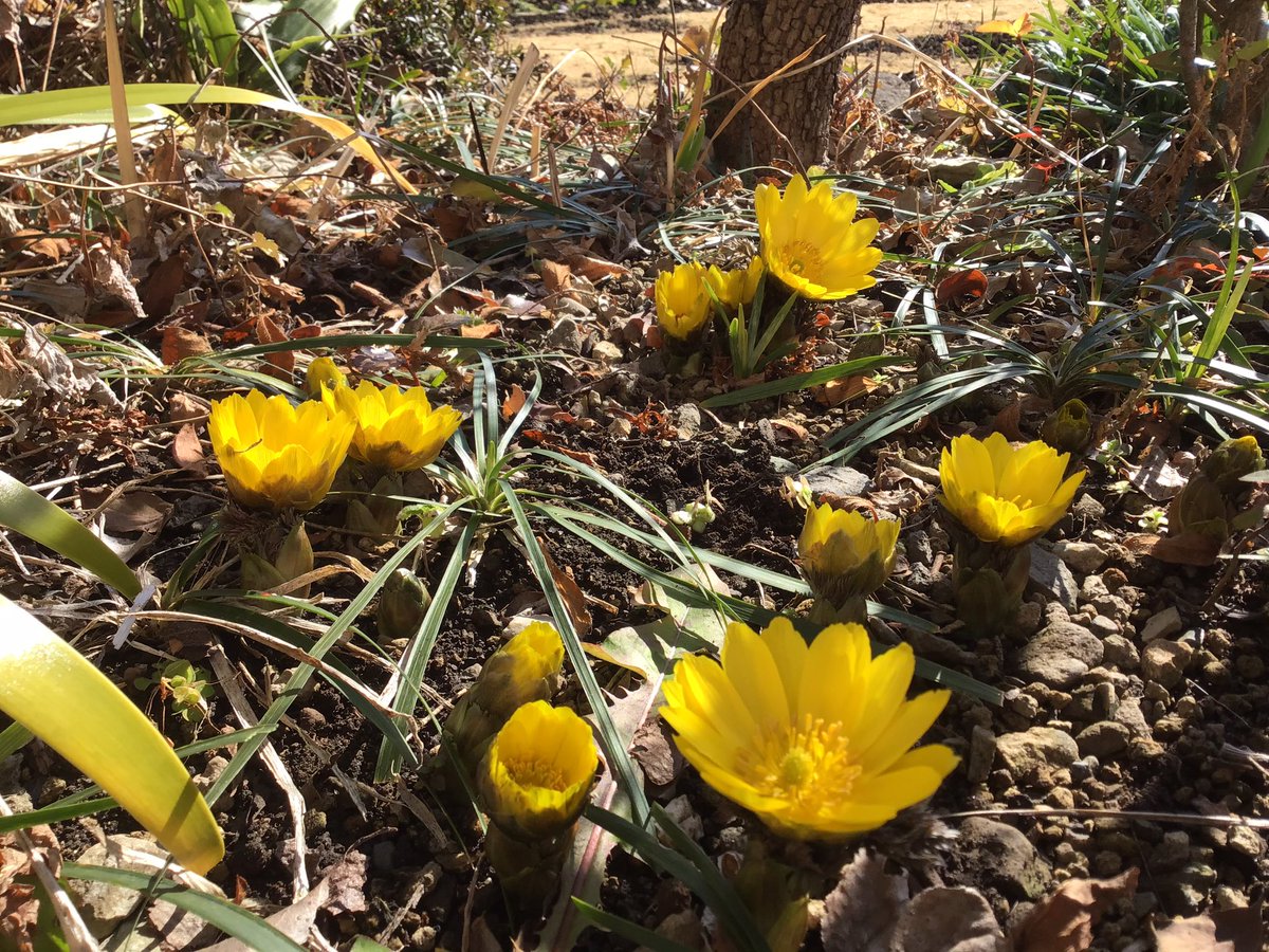 福寿草の黄色が綺麗です 椿も一輪咲き始め 昨年から山茶花が 咲き続け 昨日の雪が嘘の様 今は春
