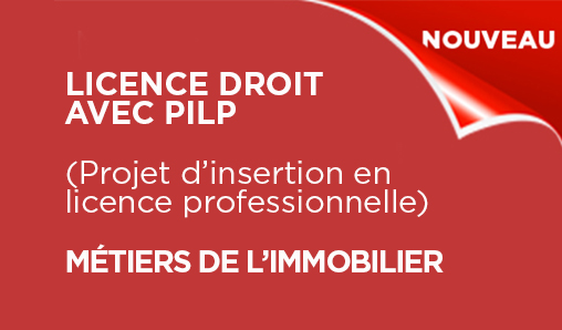 La Faculté de droit enrichit son offre de formation et met en place un nouveau parcours de Licence pour la rentrée universitaire 2020-21 : la Licence Droit avec PILP (Projet d'insertion en licence professionnelle) Métiers de l'immobilier