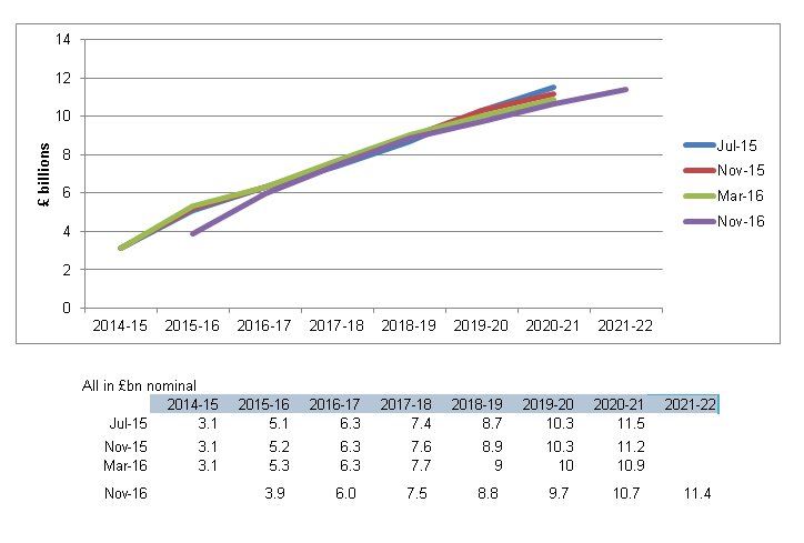 Here are latest @OBR_UK projections for Levy Control Framework spend - slight decrease vs March-16 figures.pic.twitter.com/p0Iug3kJE0