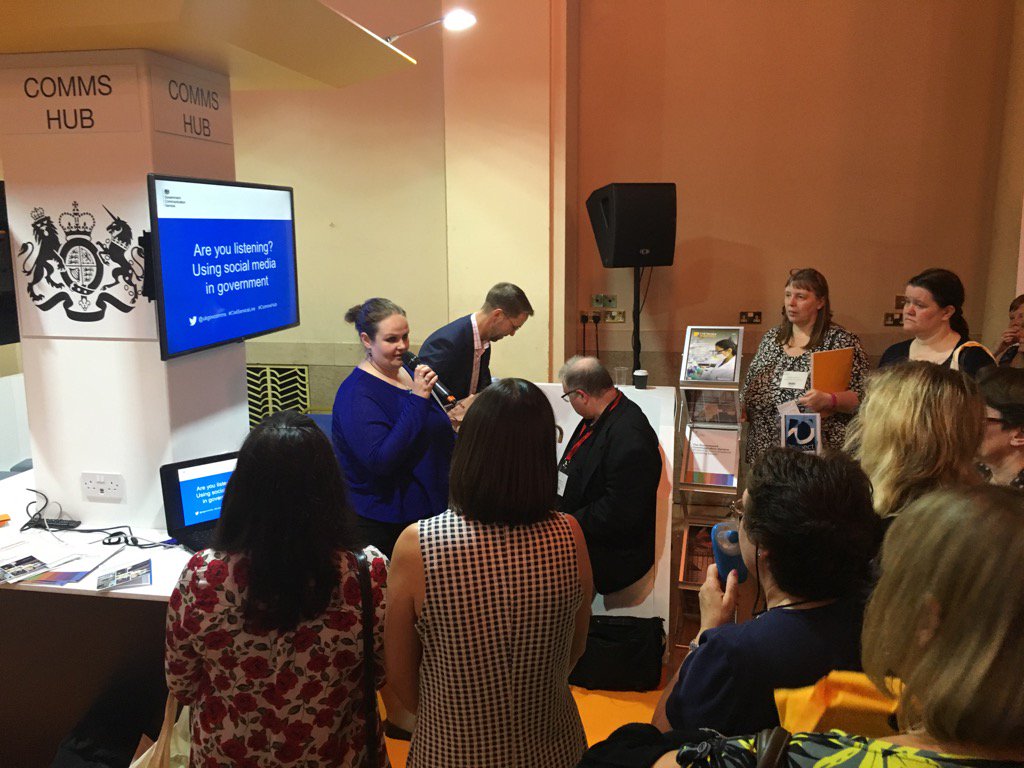 That is me sitting down, with the glasses, the black jacket and the red lanyard