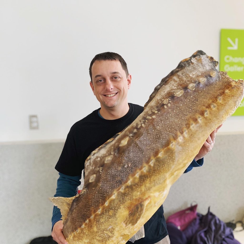 Sturgeon General is excited to show off the decorations we added to the tank! Visit the 𝗦𝘂𝗿𝘃𝗶𝘃𝗼𝗿: 𝗧𝗵𝗲 𝗹𝗼𝗻𝗴 𝗷𝗼𝘂𝗿𝗻𝗲𝘆 𝗼𝗳 𝗹𝗮𝗸𝗲 𝘀𝘁𝘂𝗿𝗴𝗲𝗼𝗻 exhibit while it's here for