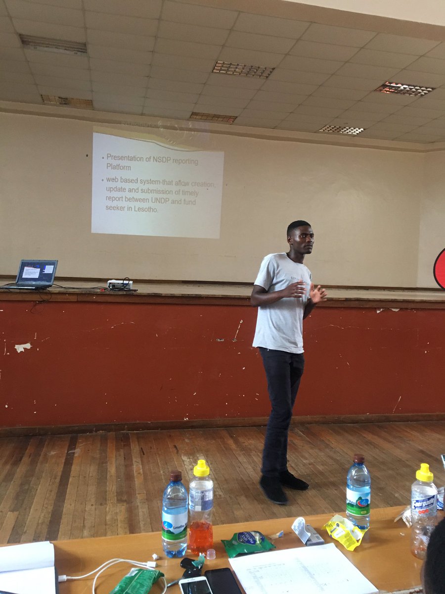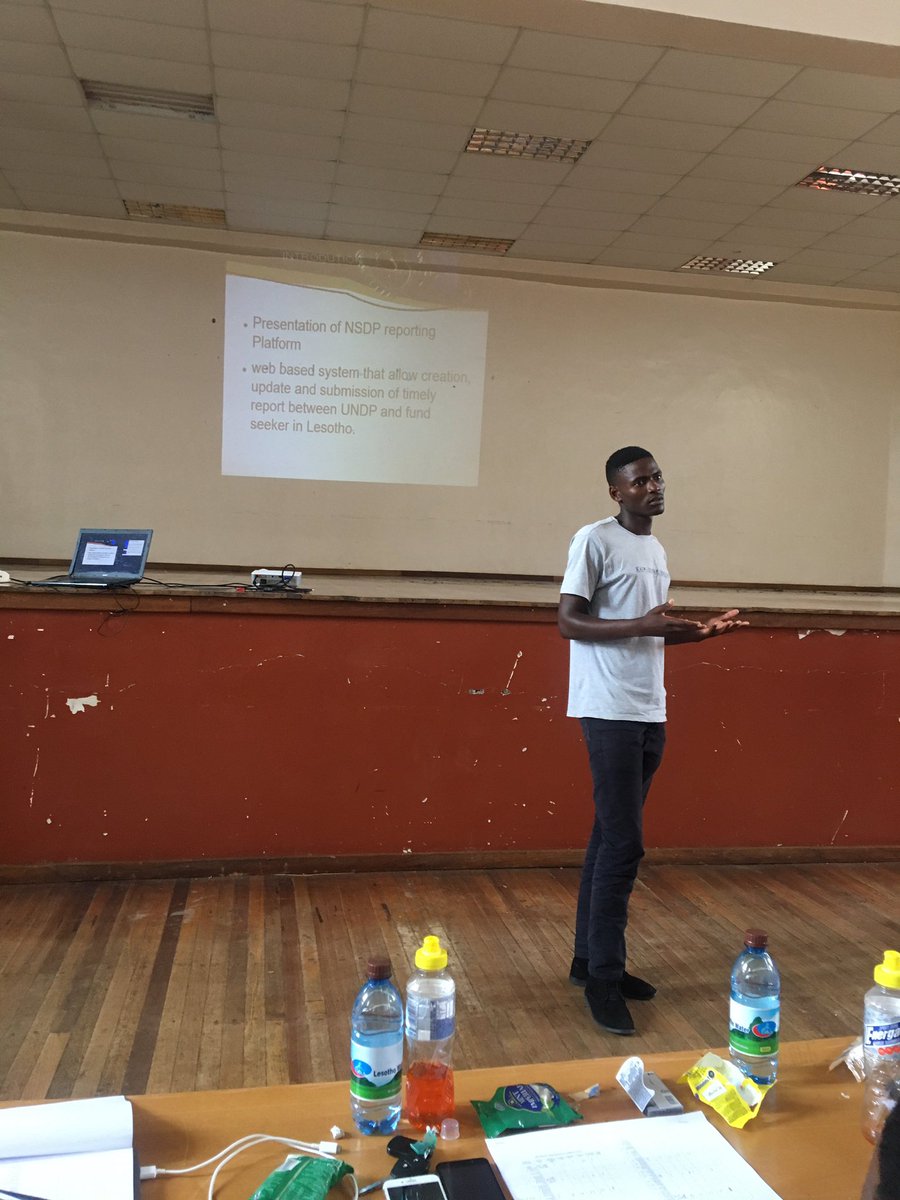 #nulisticehackathon was the NSDP reporting platform. Currently a participant is presenting their solution to a panel of 7 judges#innovate#accelerate#acceleratorLabs@UNDPAccLabs@VodacomLes@betty_wabunohapic.twitter.com/d9QBb4ugK4