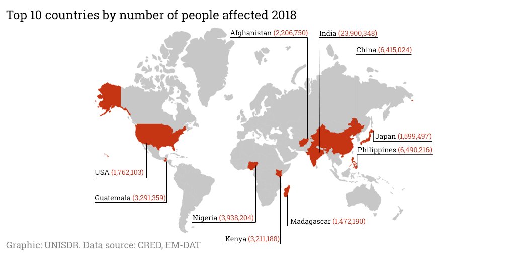 Seismic activity #Earthquakes #tsunami #volcano caused majority of 10,300 lives lost in 2018 but extreme weather events accounted for most of 61.7 million people disaster affected #climatechange #flood #storm #drought #ResilienceForAll #SendaiFramework