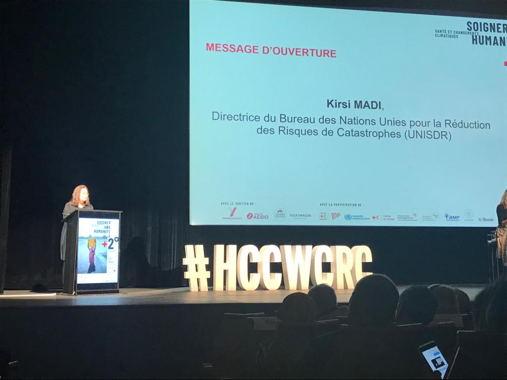 'Your health is first thing to suffer when you are displaced by a flood, a storm or a drought. In recent years, internal displacement caused by extreme weather events has reached chronic levels surpassing the numbers displaced by conflict. ' - Kirsi Madi, @unsidr tells #hccwcrcpic.twitter.com/3Qv3FoejsV