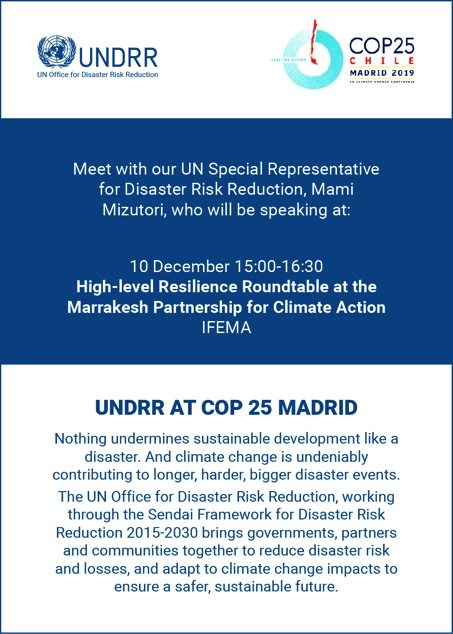 Nothing undermines development like a disaster. Building resilience is key to tackling climate change and disasters @HeadUNDRR at #COP25Madridpic.twitter.com/UjrGiavXgT