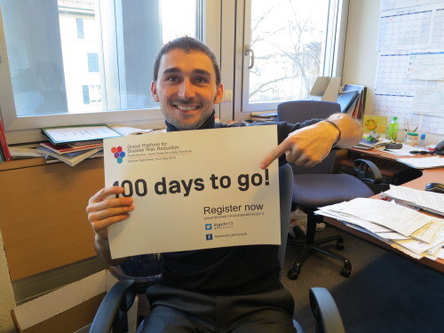 100 days to go before #gpdrr13 by our conference room manager - He's juggling 85+ meetings spread over 40 rooms!pic.twitter.com/qdQ9LFRq