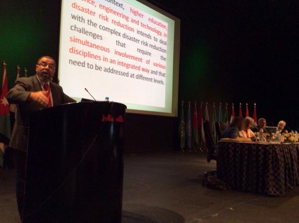 Prof Benouar from Algeria talks on built environment &disasters at science session #arabdrr2014 #drr #wcdrrpic.twitter.com/YdzhwVaN1p