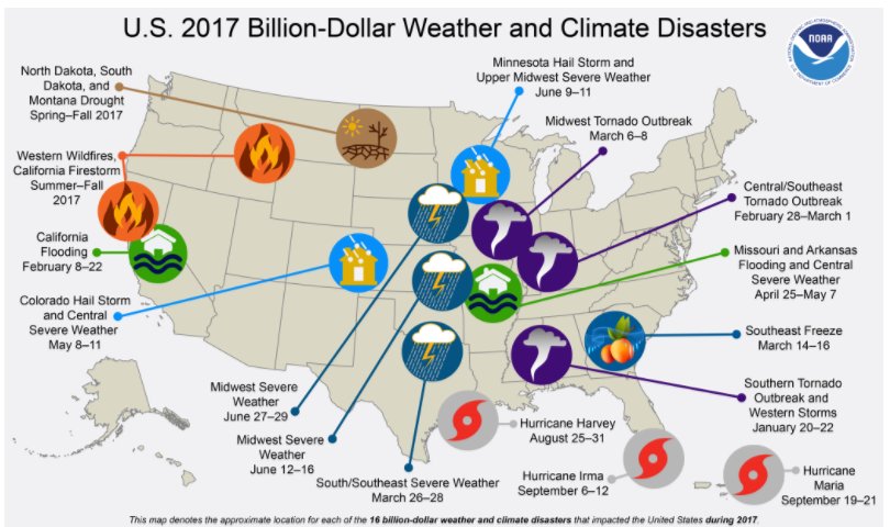 Extreme weather continues in the US. In 2018, already there have been 3 extreme weather and climate events with losses exceeding $1 billion each. There were 16 such events last year costing $309 billion, a new record. #SendaiFramework #DRR #climatechange https://bit.ly/2fXEslt pic.twitter.com/v30xiYaeAl