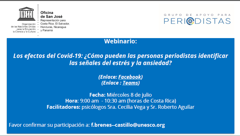 Este webinar pretende brindar apoyo psicológico y acompañamiento a #periodistas y sus familias en el manejo del estrés y la ansiedad.