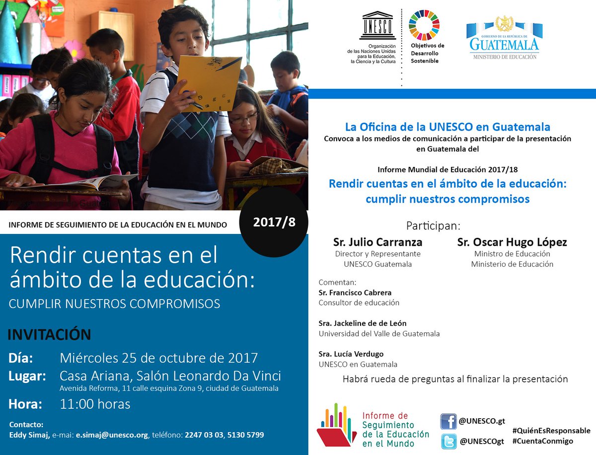 Convocatoria a los Medios de Comunicación. Presentación del Informe Mundial de Educación 2017/18. Esperamos contar con su participación.pic.twitter.com/eLx92j16Cf