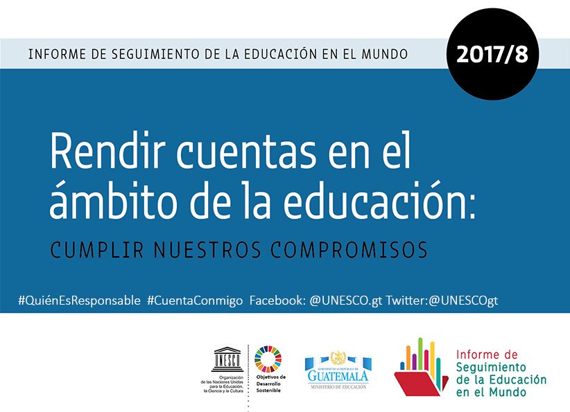 ¡Buenos días! Hoy presentamos el Informe Mundial de Educación @GEMReport2017. Participa, la etiqueta es #Cuentaconmigo y #QuiénEsRespondablepic.twitter.com/ejILq19KYG