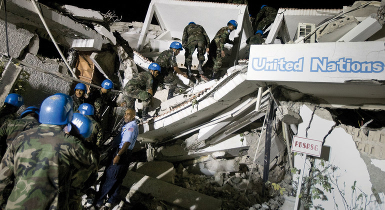 #Onthisday we remember those who lost their lives and had their lives affected by the#Haïti earthquake in 2010. We also honor the memory of the 102@UN colleagues who lost their lives. View of remains of a cathedral in Port-au-Prince on 15 January 2010.#RememberHaïti@UNHaitipic.twitter.com/TsfwspVaZU