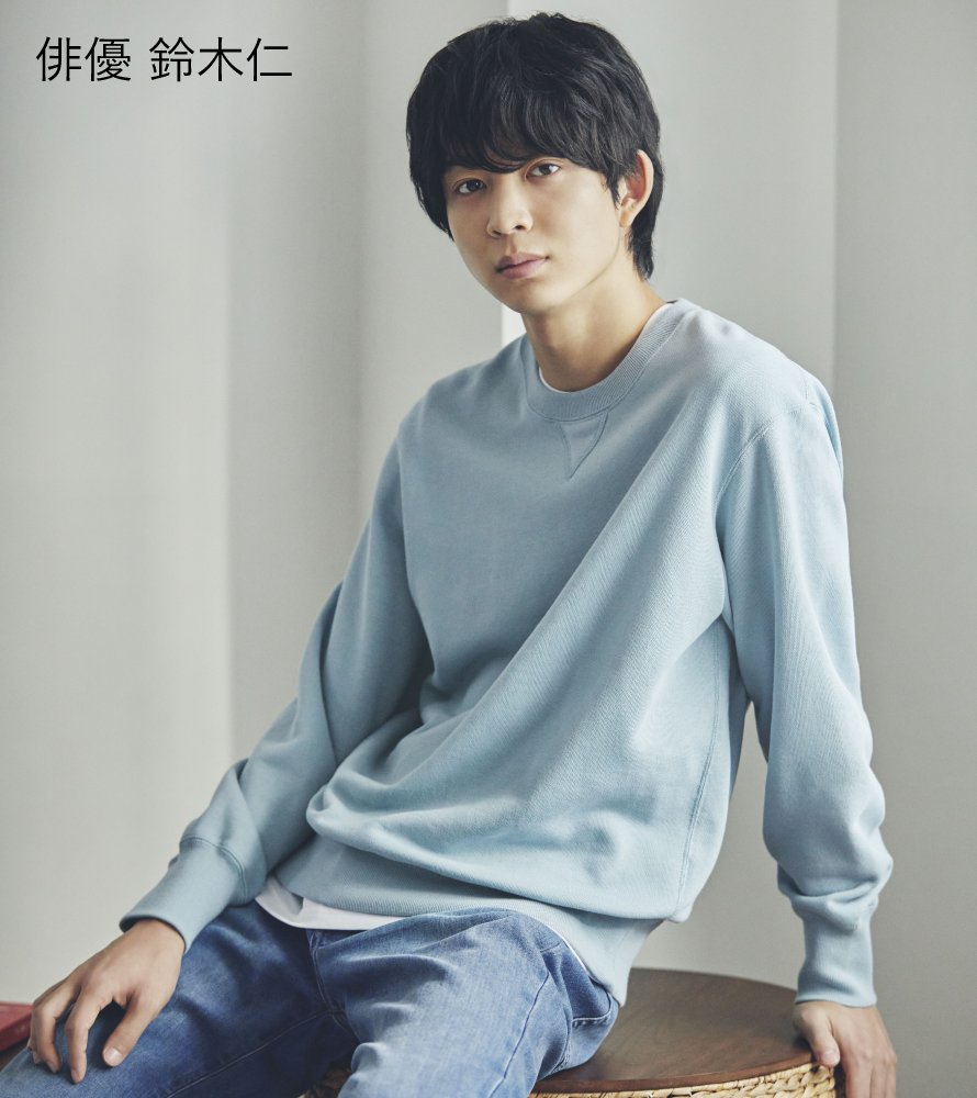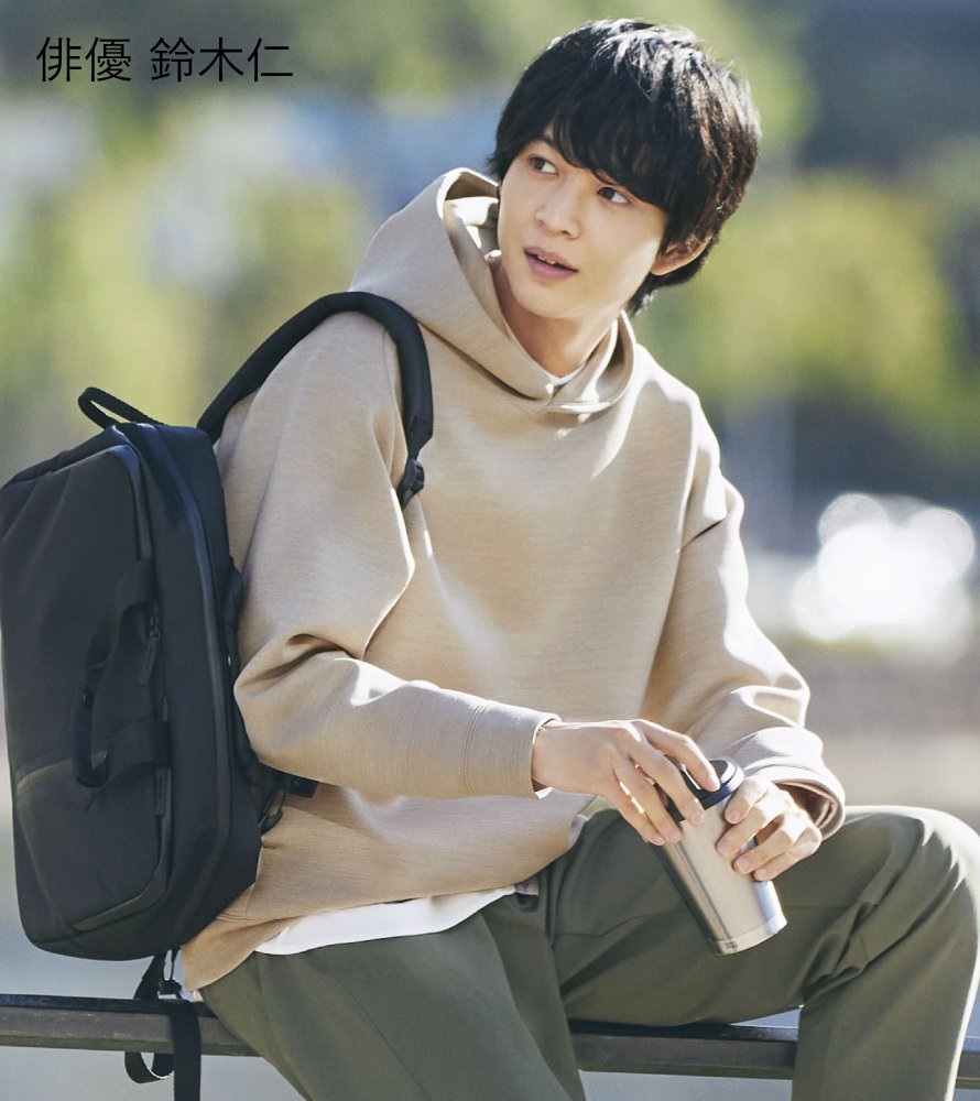 #スウェットシャツ 右)スポーティでアクティブな雰囲気の#スウェットプルパーカ *画像:俳優 鈴木仁さん 今買って春まで活躍!スウェット・パーカ(MEN)のラインナップはコチラ