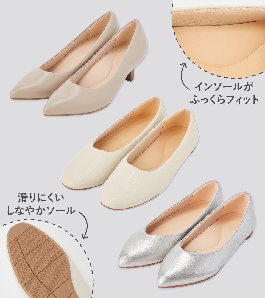 カタチ、素材、ヒールの高さなど、ラインナップ充実の『コンフィールタッチシューズ』