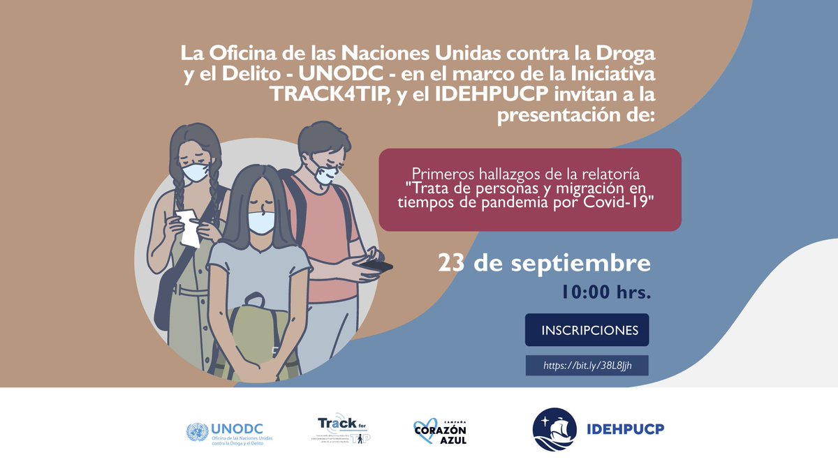 abordaremos los primeros hallazgos de la relatoría sobre #TrataDePersonas, migración y#COVID19. Un esfuerzo de comprensión del fenómeno que@UNODC_PERU e@idehpucp lo hacen posible gracias a nuestra iniciativa#Track4Tippic.twitter.com/AJnjYmbtW6