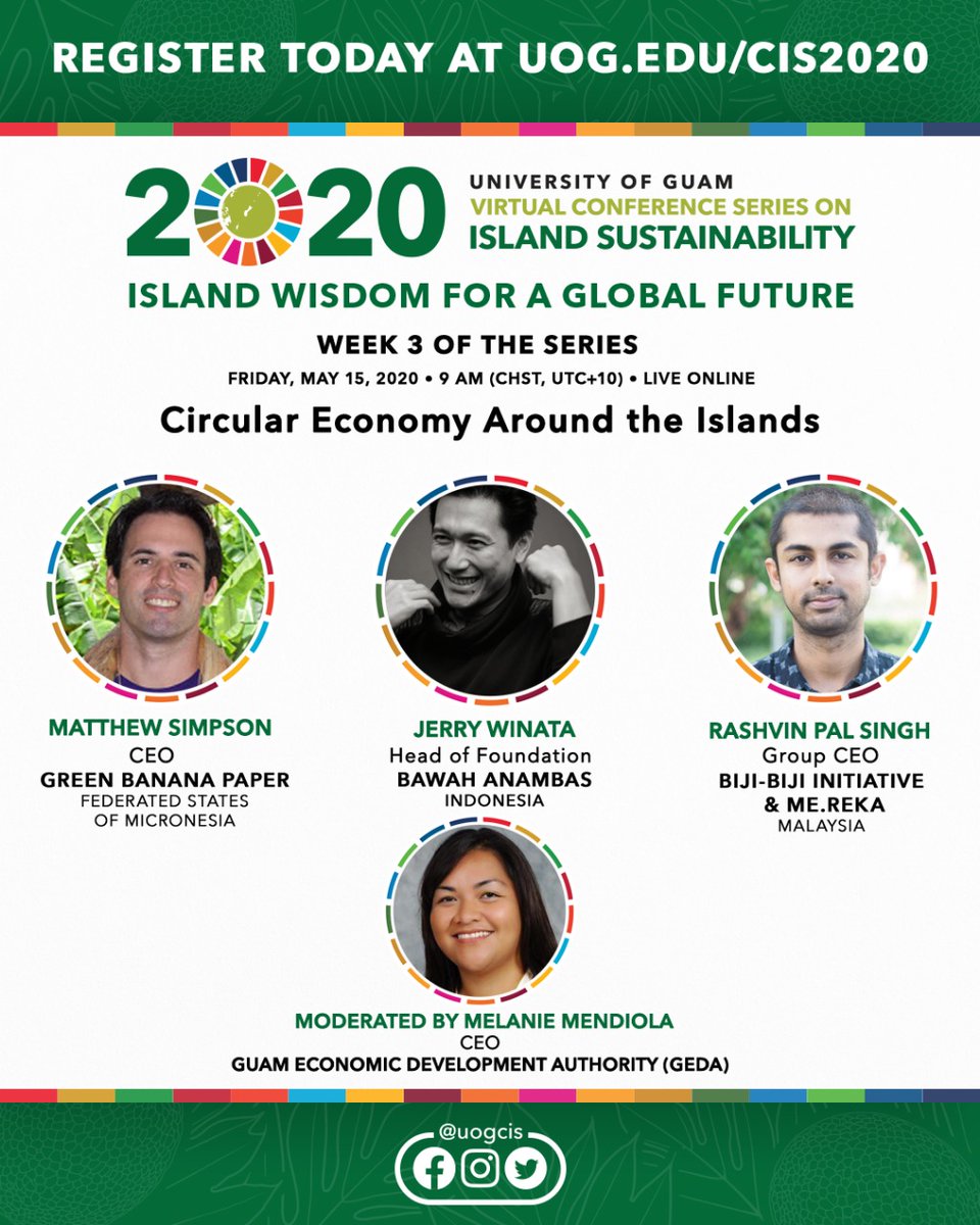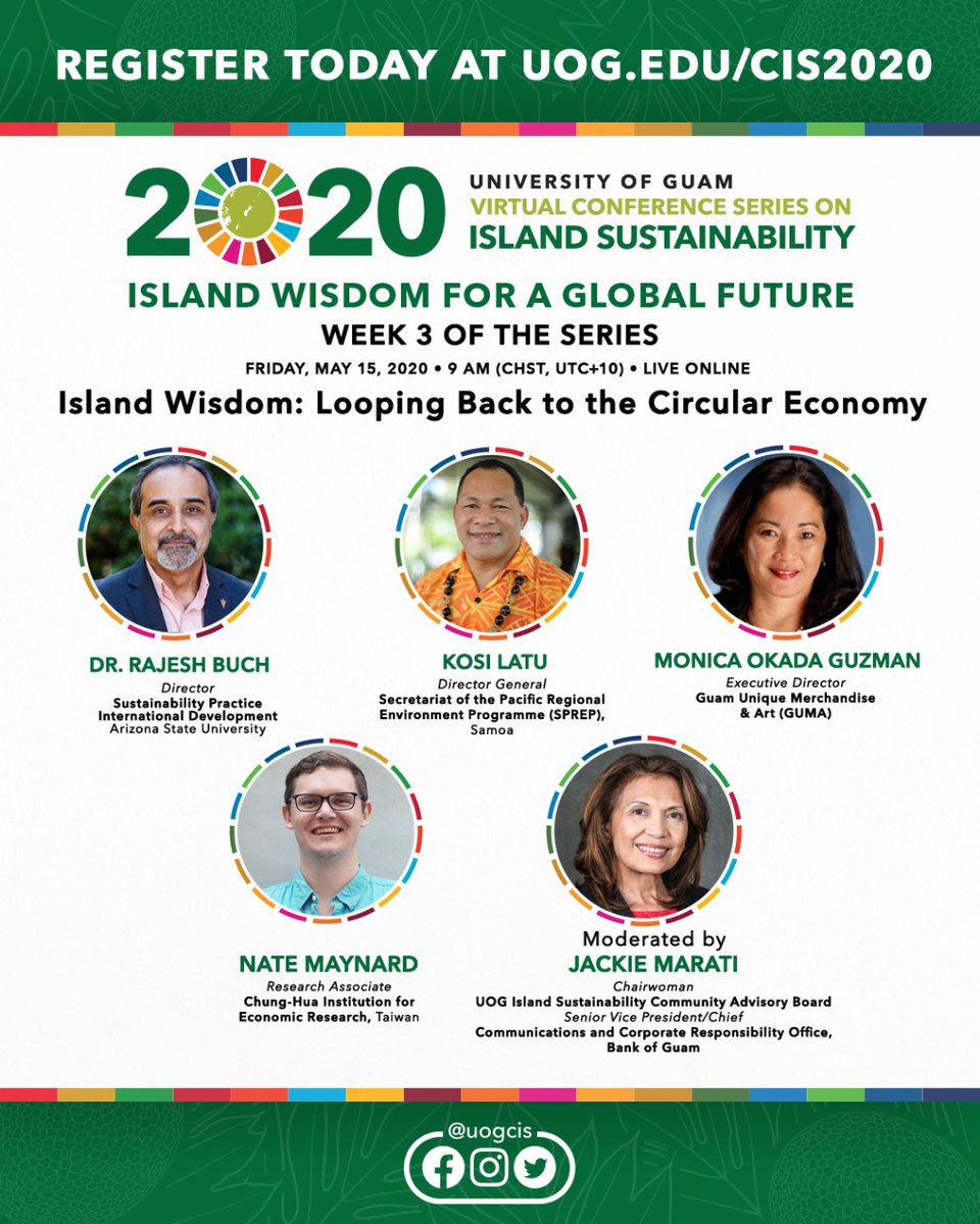 #Local2030Islands partners@uogcis for the virtual island conf - this week its#Island Wisdom and#CircularEconomy with@SprepChannel@circulareconomy@MadeInKosrae@ASUgreen@BawahAnambas@BijiBiji_KL@_investguam Fri May 15 9 am CHST.@SameeraSavarala@UNOHRLLSpic.twitter.com/KUK8KBhiUW