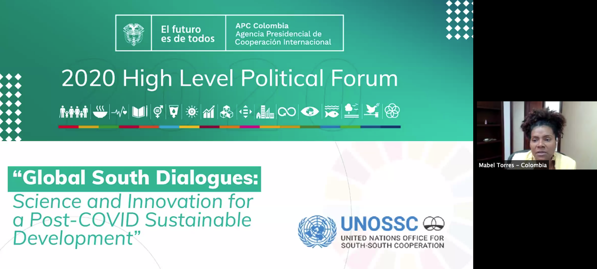 Science technology and innovation strengthen economies to respond to crises like #COVID19 said H.E. Ms. Mabel Gisela Torres, Colombian Minister of Science, Technology and Innovation, at a #HLPF2020 side event of @APCColombia and @UNOSSC