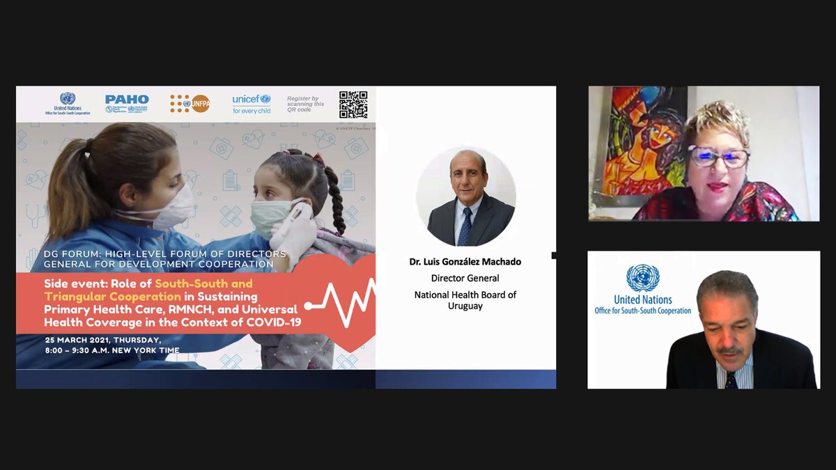 DG Forum 2021, #Health Side Event: Adel Abdellatif, UNOSSC Director a.i. emphasizes that leveraging #SouthSouth and #TriangularCooperation in #COVID19 response and recovery has been one of the major areas of our work over the last year | @pahowho @UNFPA @UNICEF @galaxy_southpic.twitter.com/DNa0wnXJtp