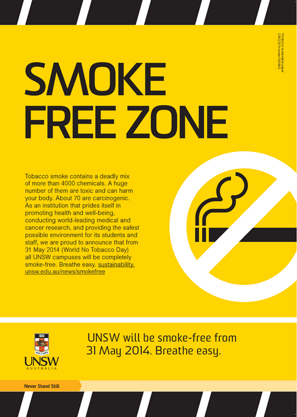 @UNSW: UNSW will be an entirely smoke free environment from 31 May#breatheeasy pic.twitter.com/dnSR9bDqrd” happy news