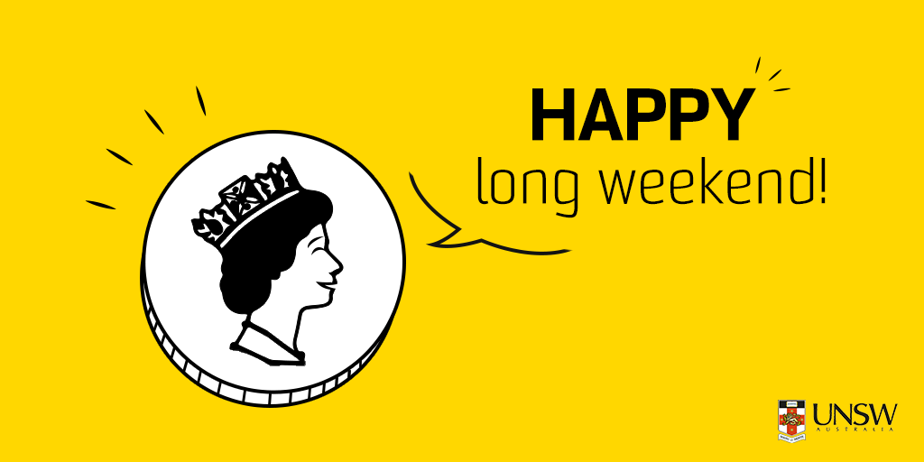 Happy Queen's Birthday Holiday! A long weekend during #UNSWExamPrep: a blessing or a curse? ;-)pic.twitter.com/ynF13mnVsr