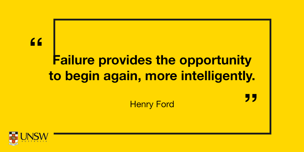 "@UNSW: The most important lesson? #NeverGiveUp pic.twitter.com/kRGnHTycBh" If you have never failed, you have learnt nothing !