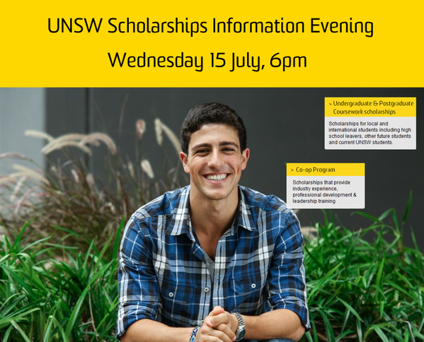 The UNSW Scholarships Info evening is in 2 days. Don't miss out, register: http://bit.ly/1TvA3Dh pic.twitter.com/6X8vCRy6O8