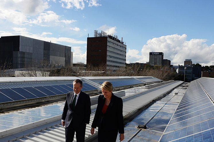 At UNSW today @billshortenmp + @tanya_plibersek talked #SolarEnergy with our world-record breaking researchers.pic.twitter.com/1fVlnTtGfH
