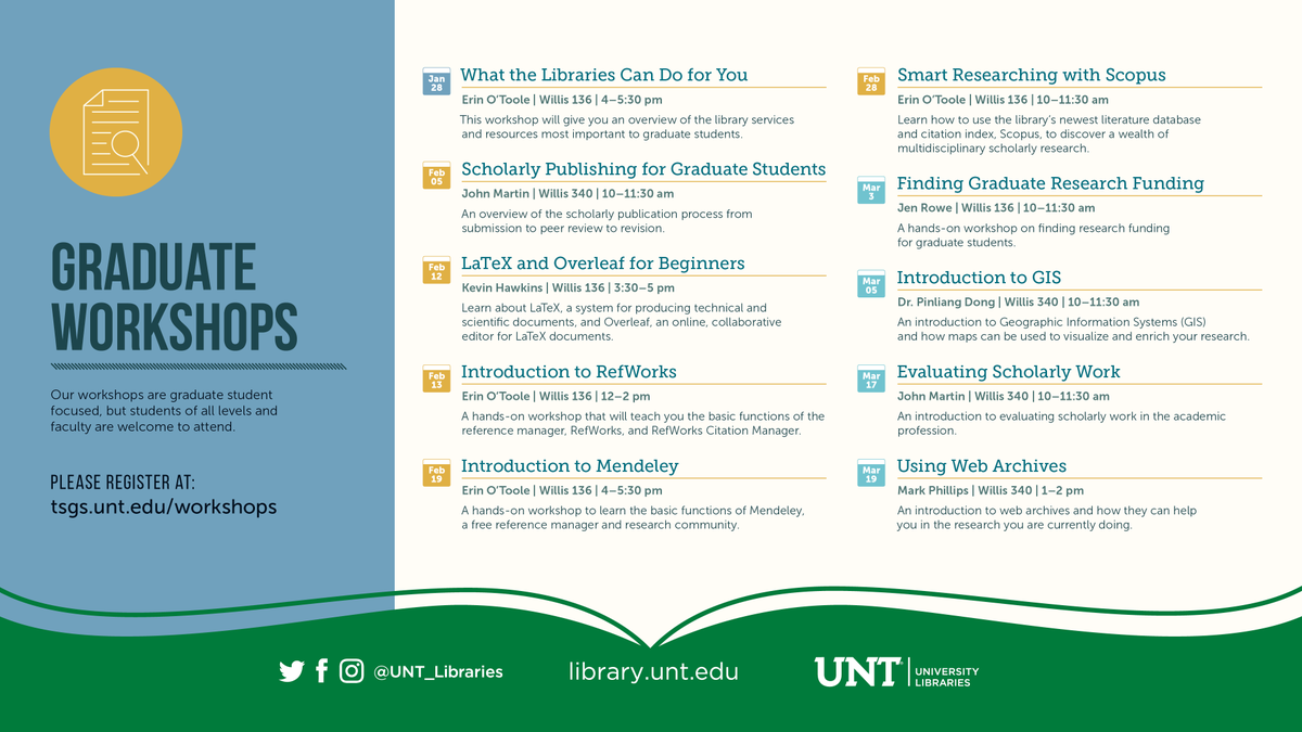 Wondering how the library can help you be a successful graduate student? Our first workshop of the semester will give you an overview of the library services and resources that are most helpful to you. Register now! http://bit.ly/untlib-do-for-you …pic.twitter.com/VcLiInbHcT