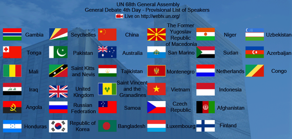 September 27 is the 4th day of #UNGA debate. Agenda: http://goo.gl/r9BWAM Watch live: http://webtv.un.org/ pic.twitter.com/ggfCLgyrwK