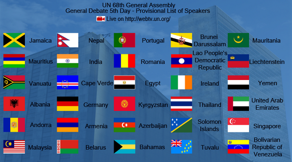 September 28 is the 5th day of #UNGA debate. Agenda: http://goo.gl/r9BWAM Watch live: http://webtv.un.org/ pic.twitter.com/LZz1vqteM7