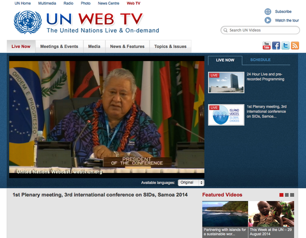 Streaming LIVE now at http://webtv.un.org Opening of the 3rd Small #Islands2014 Conference in Apia (#Samoa)pic.twitter.com/xgIPDbGGnA
