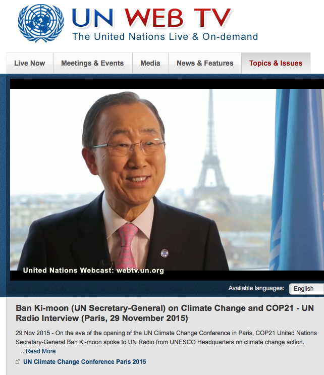Watch #UNSG Ban Ki-moon @UN_Radio interview on the eve of the opening of @COP21 @jpasztor | http://bit.ly/1NCtekd pic.twitter.com/XdfEmjk1jp