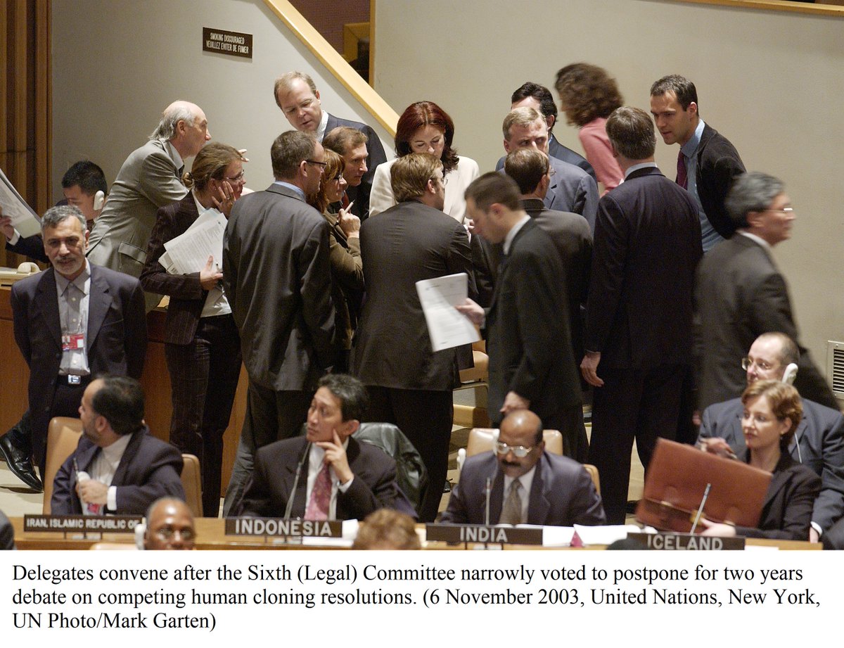 In 1997, the World Health Assembly, @WHO's governing body, stressed that human replication was ethically unacceptable https://bit.ly/2BMr3c1 . In 2005, the #UNGA approved the UN Declaration on Human Cloning, urging its prohibition by all States https://bit.ly/2EcxyoX  #bioethicspic.twitter.com/ROA2rKCr5c