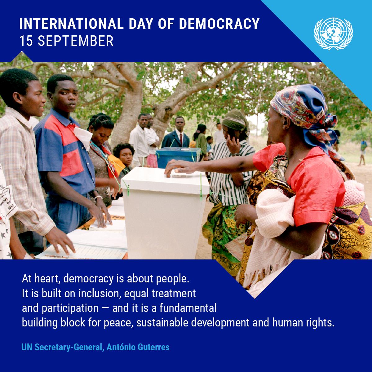 #Today is Int'l #DemocracyDay, established in 2007 as part of @UN work on support for democracies https://bit.ly/2kgj7Kt . The 2019 theme, "Participation", recalls the #UDHR: "the will of the people shall be the basis of gov't authority" #SDG16 @IPUparliament @UNDemocracyFundpic.twitter.com/MzZfusuznn