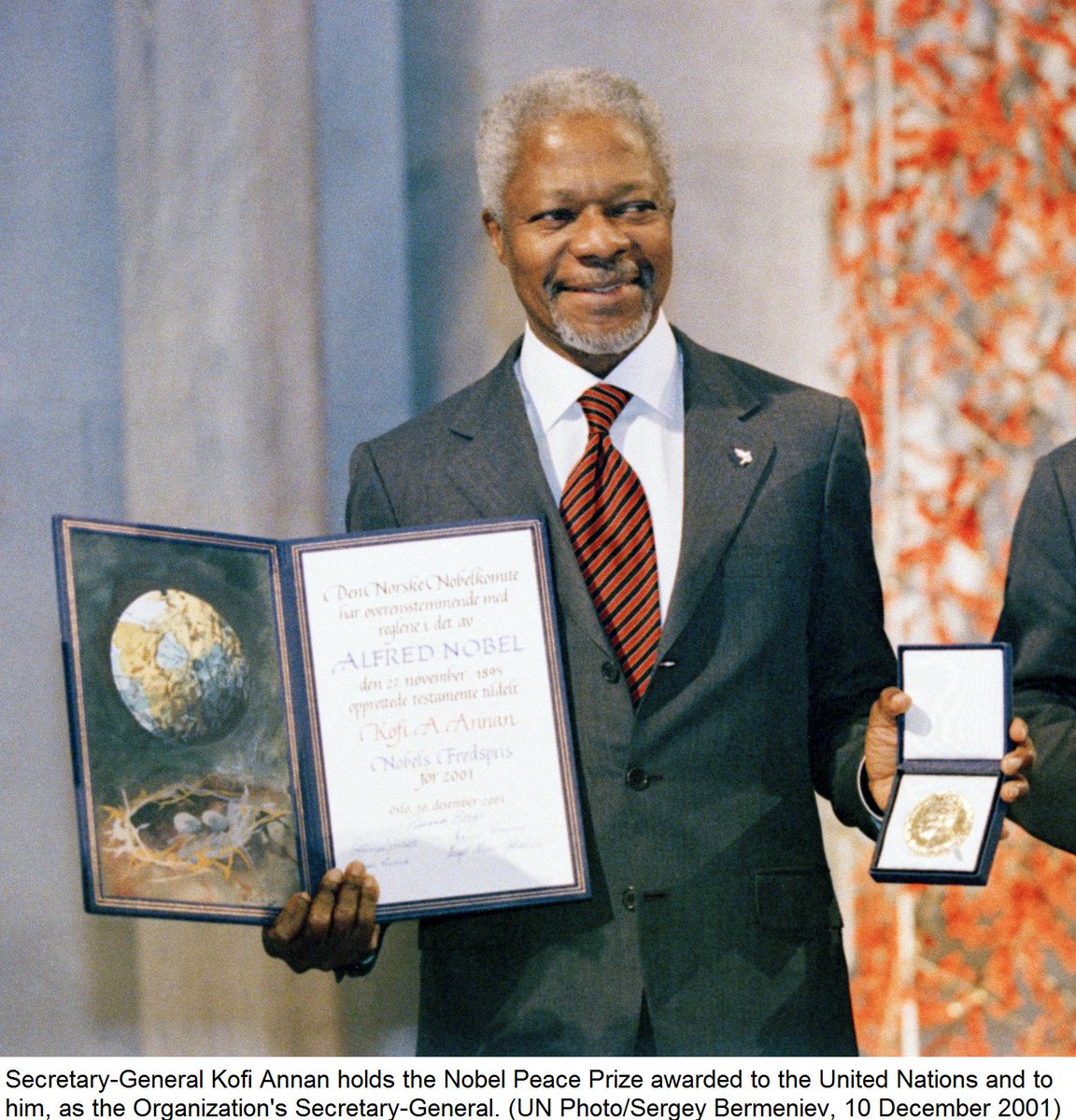 #DYK @KofiAnnan & @UN shared @NobelPrize in 2001 for their work for a more peaceful world? http://ow.ly/2HGB302Foqp pic.twitter.com/g0IINTwq7C