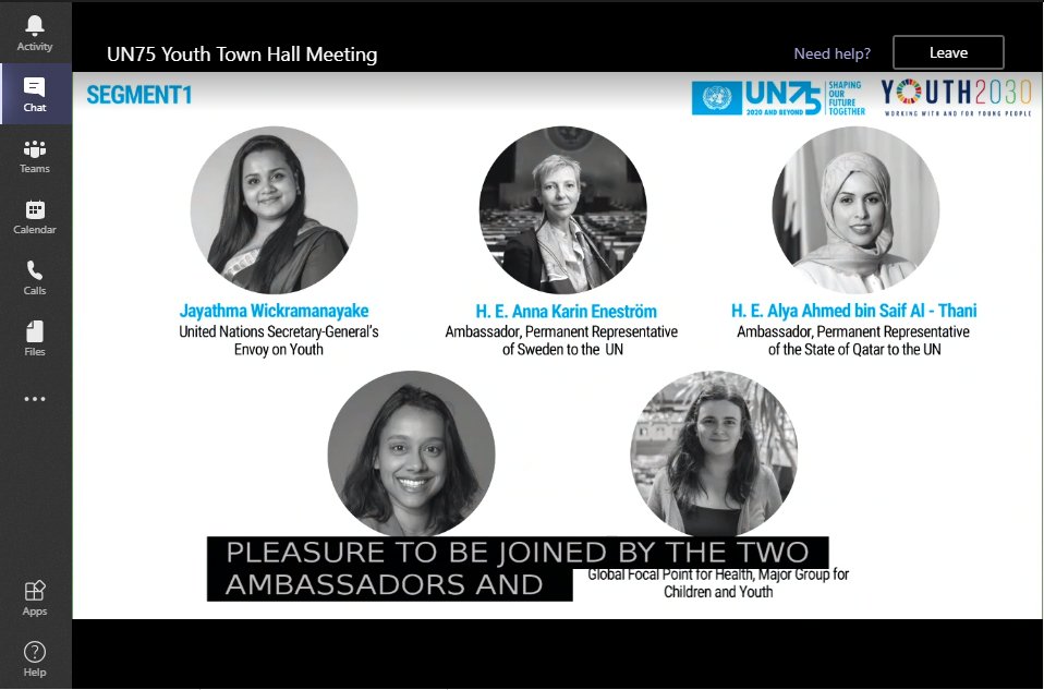 #YouthTownhall with co-facilitators@QatarAtUN and@SwedenUN.#Youth2030: have your voice heard, join the conversation! http://bit.ly/35ChAl6 pic.twitter.com/w1dGn0KquL