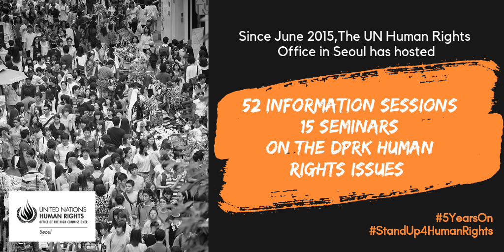 Today marks the 5-year anniversary of the @UNHumanRights office in #Seoul. Dear media, academia, governments and civil society - Thank you for being a part of our journey to promote #humanrights in the #DPRK. 👉http://bit.ly/2B8szrk  #NorthKorea #5yearson #StandUp4HumanRightspic.twitter.com/UTAwybV0QL