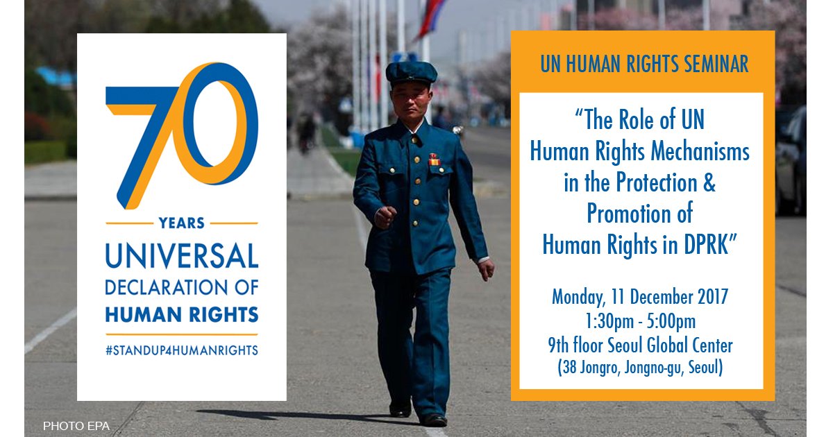 You're invited to the UN seminar on #DPRK #humanrights in #Seoul on Monday 11 Dec. UN expert @tojeaquintana, @UNrightsSeoul's Signe Poulsen, civil society leaders to attend http://bit.ly/2BxqgsW #NorthKoreapic.twitter.com/cCMDLCokFo