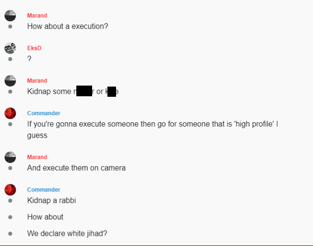 The Feuerkreig Divison was co-founded and led by an anonymous Estonian teen who went by 'Commander.' 'Commander', believed to be aged 16-19, disappeared early this year, likely due to arrest. Before that, he discussed a lot of potential terror attacks. https://unicornriot.ninja/2020/leaked-neo-nazi-terrorist-feuerkreig-division-organizing-chats/ …pic.twitter.com/3JKjLeClDL