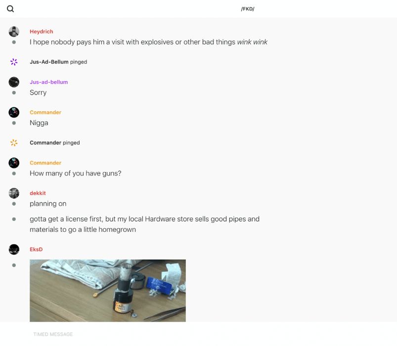 After the mass shooting in El Paso last August, Feuerkrieg Division members discussed wanting to increase the rate of deadly attacks by white nationalists. Some debated the tactics and said they should do bombings instead, like Timothy McVeigh: https://unicornriot.ninja/2020/leaked-neo-nazi-terrorist-feuerkreig-division-organizing-chats/ …pic.twitter.com/h7Rdst8pVG