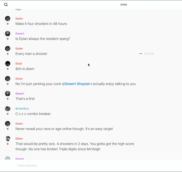 A Feuerkrieg Division member posting as 'Dylan' or 'a_lost_rhodesian' (a nod to Dylann Roof) was among those calling for more shootings. He was recently identified by antifascists as Dylan D., a junior at Miller Place High School in Suffolk County, NY. https://unicornriot.ninja/2020/leaked-neo-nazi-terrorist-feuerkreig-division-organizing-chats/ …pic.twitter.com/2WlJcFsk6Q