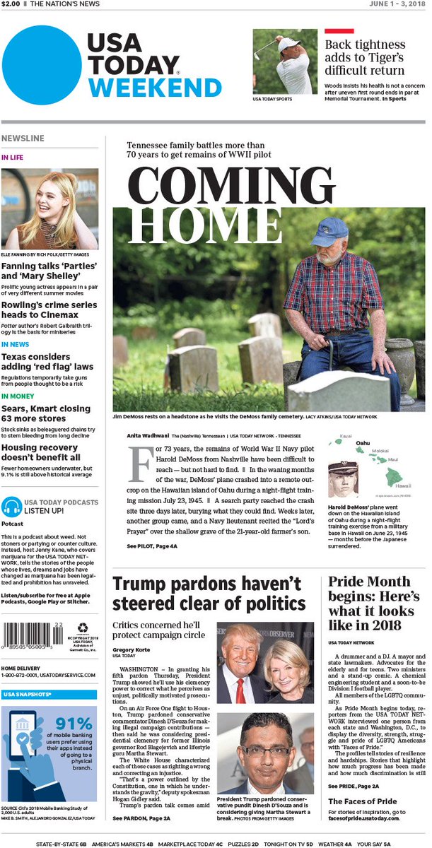 On today's #frontpage: Trump hasn't steered clear of politics with pardons; Tennessee family battles more than 70 years to get remains of WWII pilotpic.twitter.com/n21F5K8hIm
