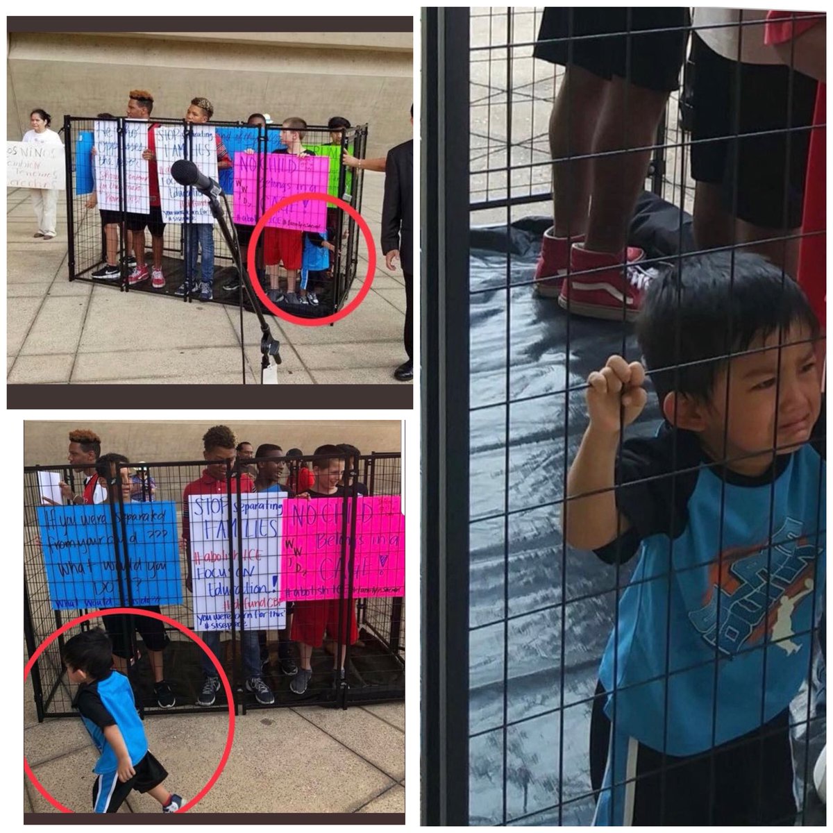 Here’s a photo of the protest from the group’s own Facebook page. Note the same ‘caged’ boy running around outside.pic.twitter.com/Woe2mIcE0L