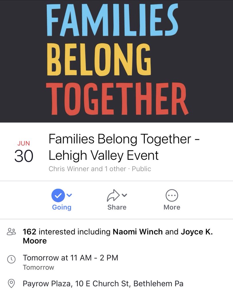 I’ll be marching in Bethlehem, Pennsylvania on Saturday at 11am. I want to make sure that the families who remain separated get reunited as soon as possible. This forced separation is traumatizing for families, and it will have long-lasting effects! Where’s our compassion & love?pic.twitter.com/LzppmK4du8
