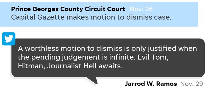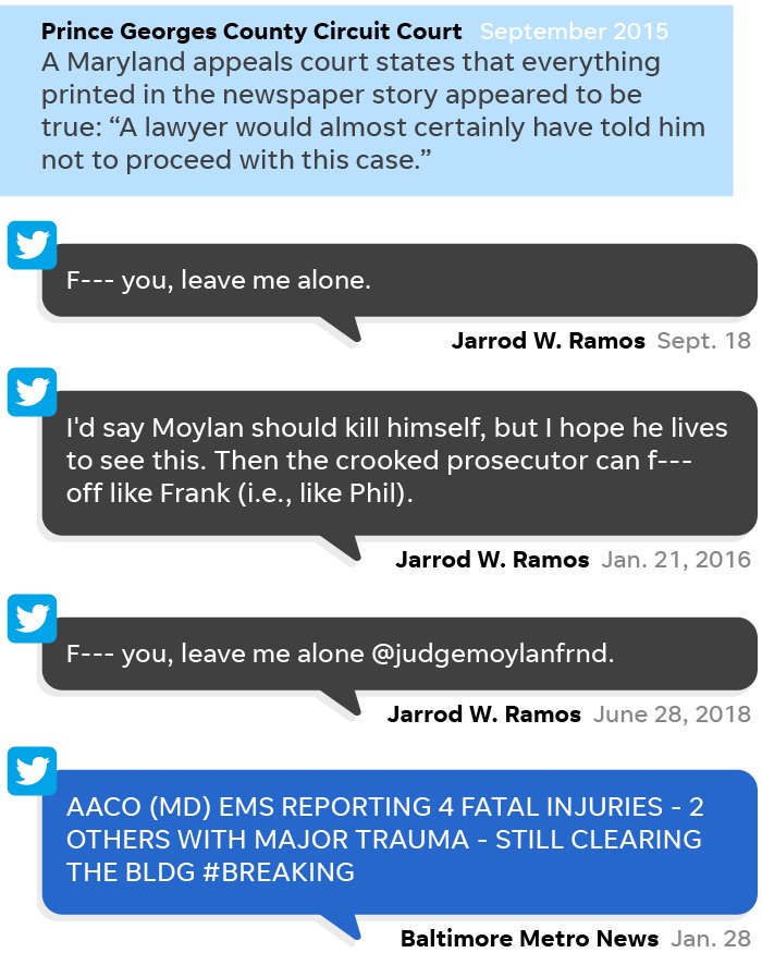 Since Nov. 20 2011, Ramos mentioned former Capital Gazette publisher Tom Marquardt by name or as "Evil Tom" in tweets nearly 100 times.pic.twitter.com/L0deJnHP2p