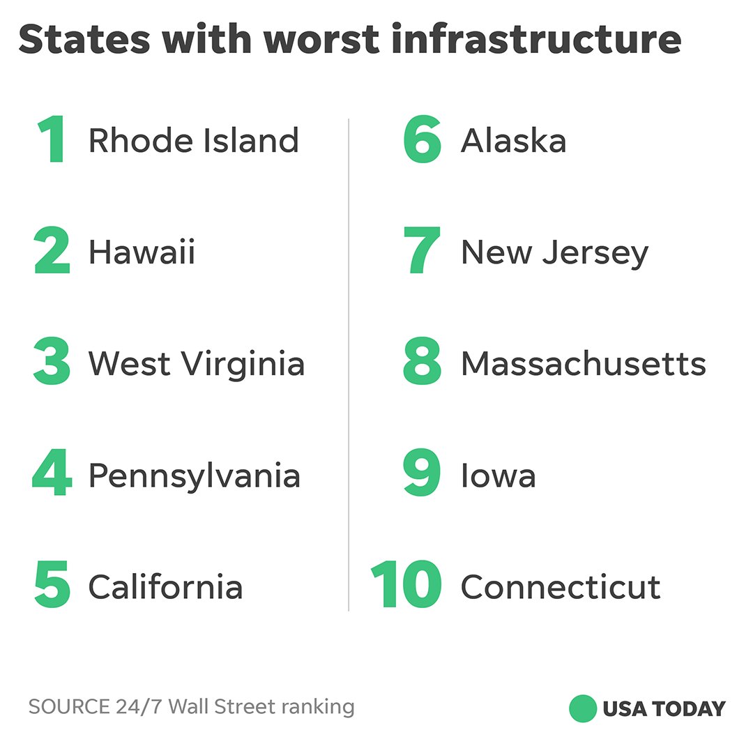 A lot of these states also have pretty harsh winter weather (RI, PA, AK, NJ, MA, IA, CT) which causes a lot of deterioration.