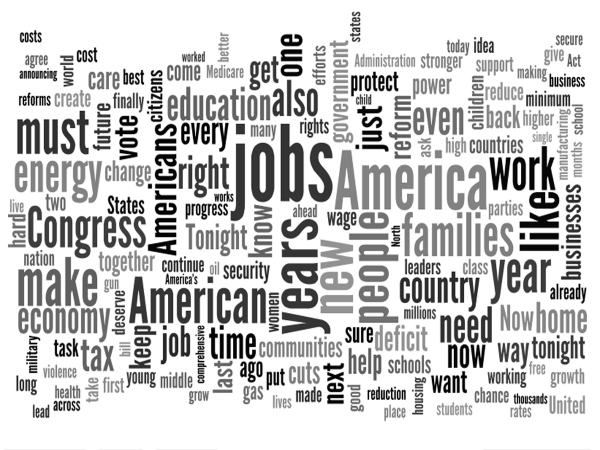 RT @USATODAY: President Obama's State of the Union speech word cloud, showing the words he used the most #SOTUpic.twitter.com/DqrSjGhW