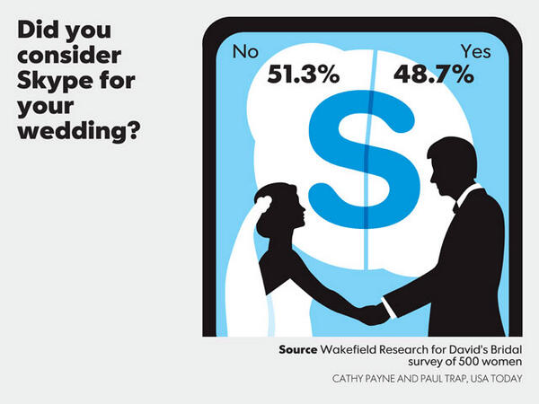 Huh... Cool or bizarre to webcast your wedding?? “@USATODAY: Almost 50% of brides say they considered Skype for their wedding"