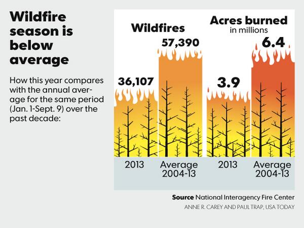 Wildfire season is 37% below the annual average in comparison to the same period over the past decade. #snapshotspic.twitter.com/4UWwBrzKUb