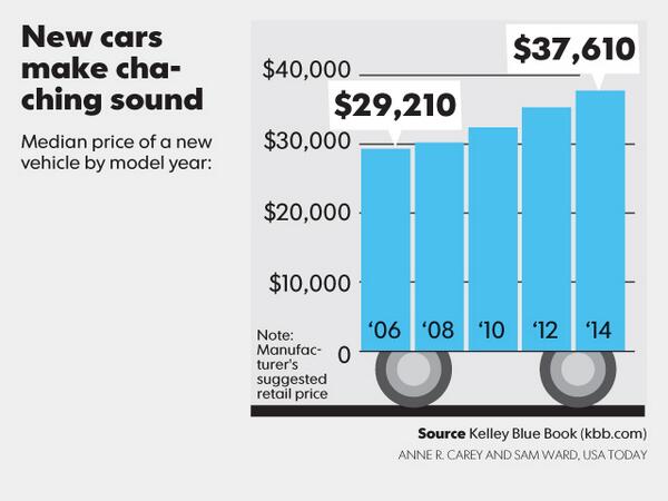 Vroom vroom = cha-ching. The median price of a new 2014 vehicle is $37,610; up 29% from 2006. #snapshotspic.twitter.com/AOme9NHcYO